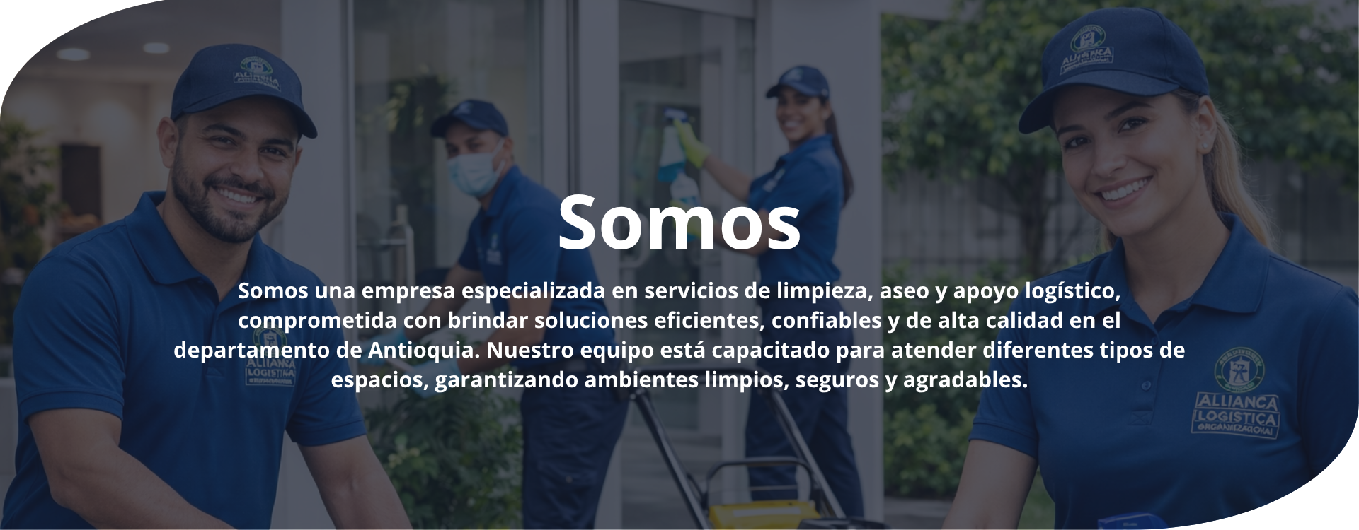 Brindar servicios integrales de limpieza, aseo y apoyo logístico con altos estándares de calidad, contribuyendo al bienestar, la seguridad y la buena imagen de nuestros clientes en Antioquia. Nos comprometemos a ofrecer soluciones eficientes, oportunas y confiables, respaldadas por un equipo humano capacitado y orientado al servicio.